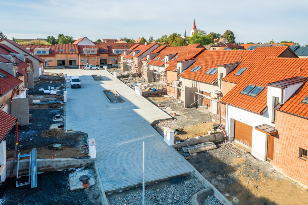 Na stavbě to žije – právě dokončujeme adhezní podlahy, které tvoří pevný základ pro budoucí útulné interiéry. Současně probíhá omítání stěn a stropů, takže jednotlivé místnosti začínají dostávat svůj pravý tvar a charakter. A protože myslíme i na vaše pohodlí během horkých letních dnů, v každém domě už jsou připraveny rozvody pro klimatizace.