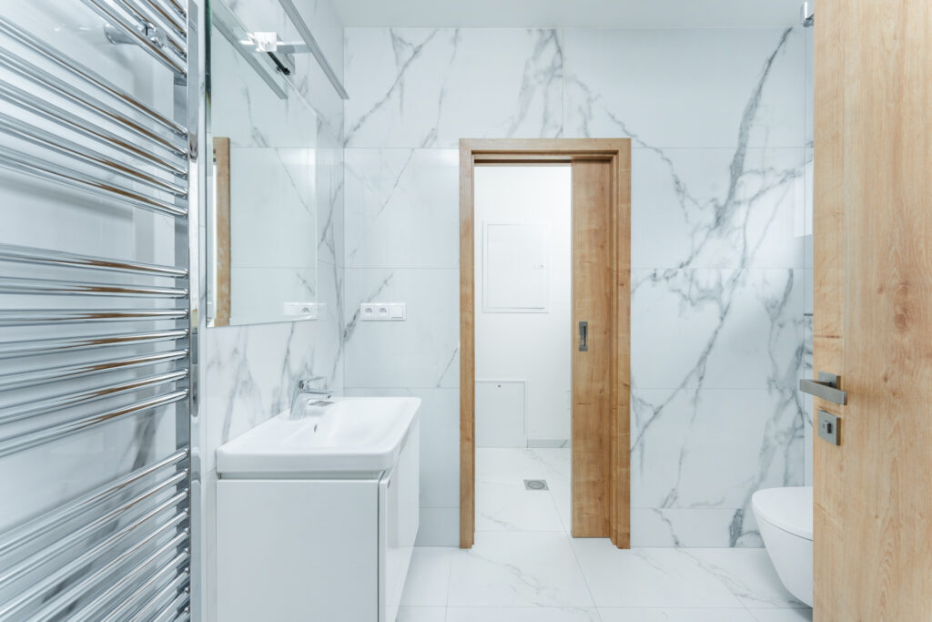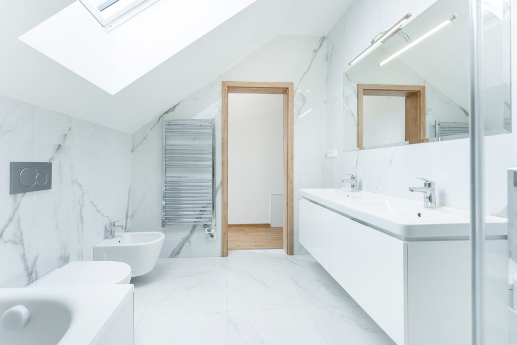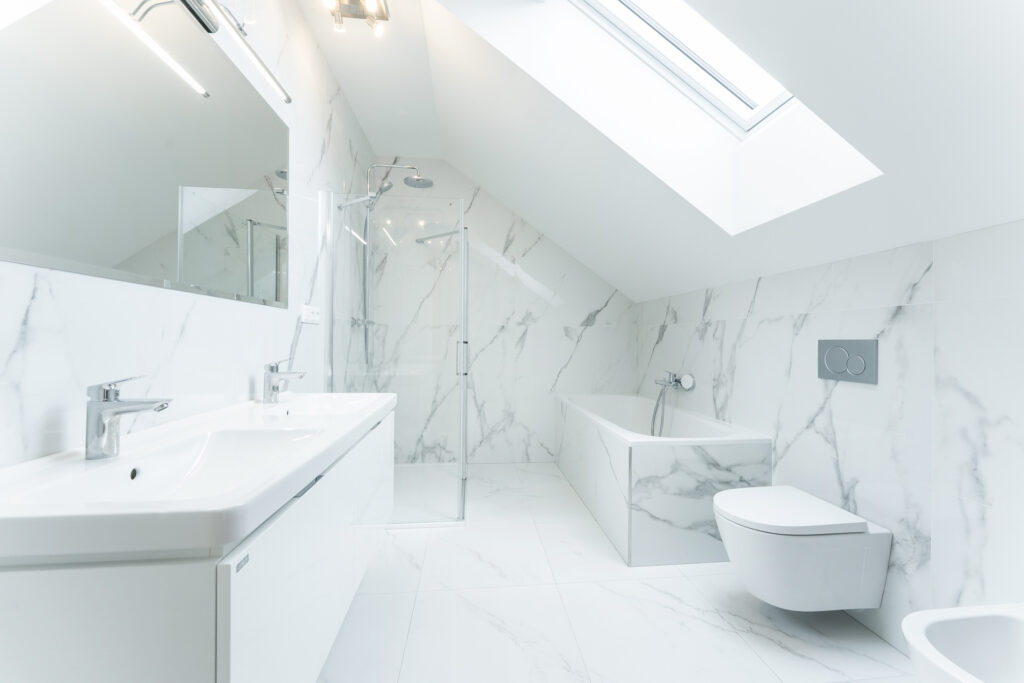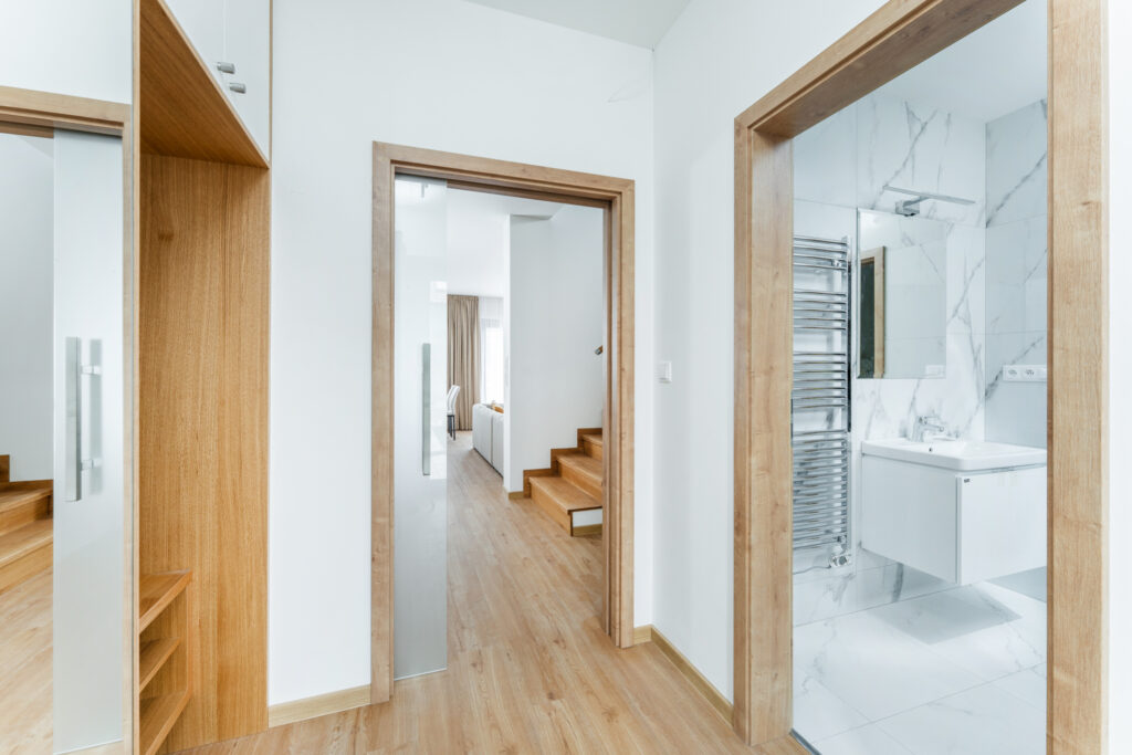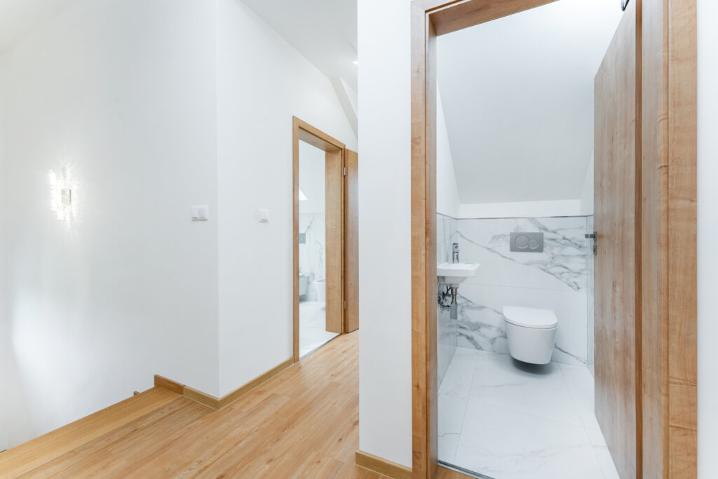 V prvních domech právě dokončujeme obklady v horních koupelnách – ladíme detaily, které promění prostor v příjemné zázemí pro každodenní relax. Zároveň probíhá kompletace vnitřních elektrorozvaděčů, bez kterých by to doma zkrátka nefungovalo.