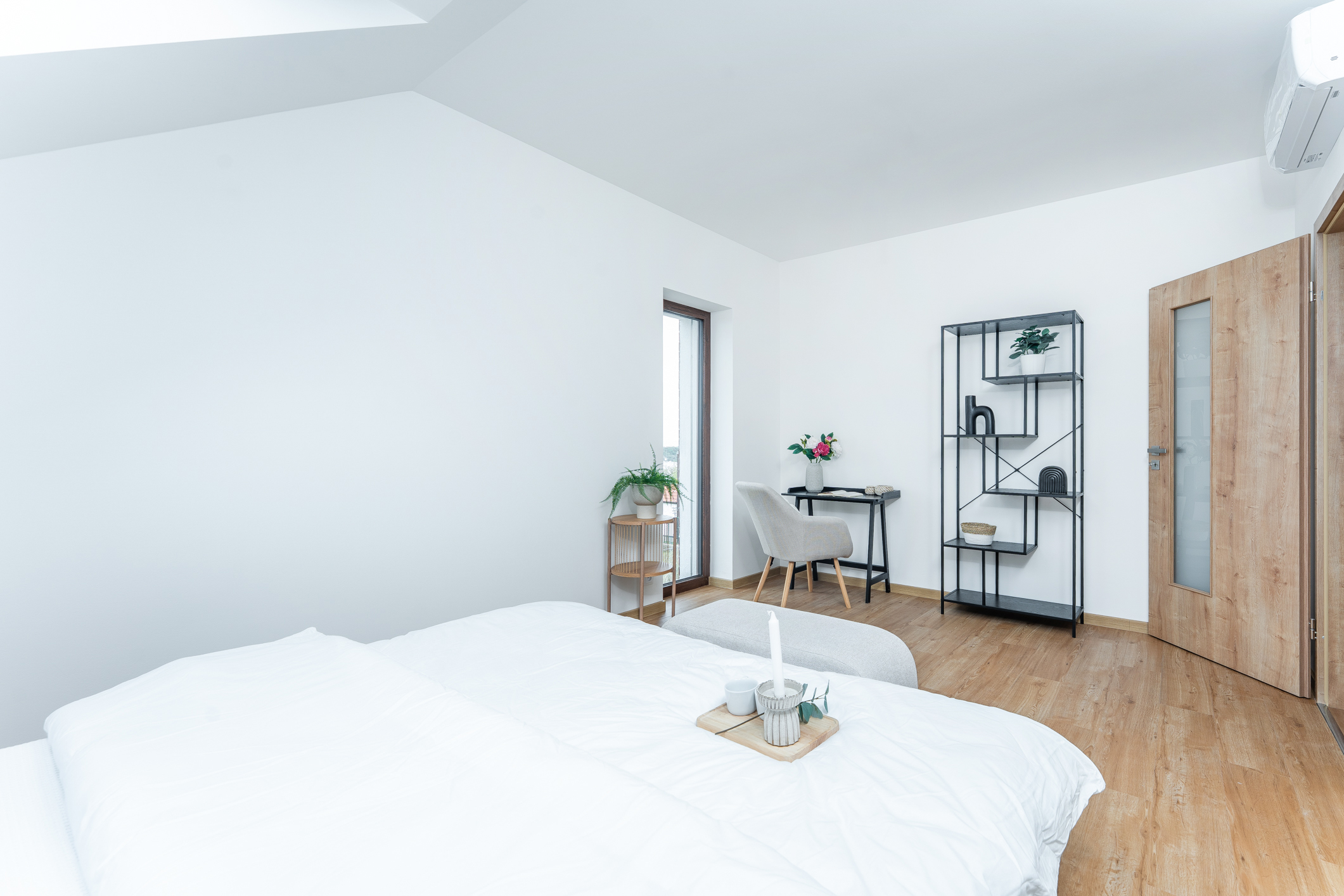 Na stavbě to žije – právě dokončujeme adhezní podlahy, které tvoří pevný základ pro budoucí útulné interiéry. Současně probíhá omítání stěn a stropů, takže jednotlivé místnosti začínají dostávat svůj pravý tvar a charakter. A protože myslíme i na vaše pohodlí během horkých letních dnů, v každém domě už jsou připraveny rozvody pro klimatizace.